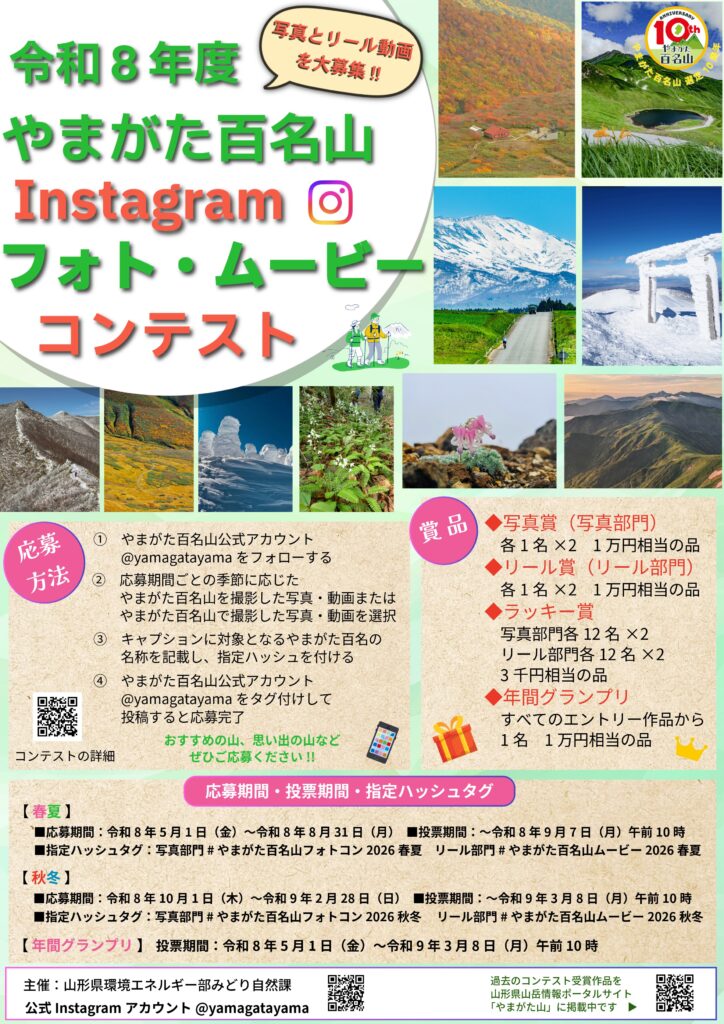 令和8年度やまがた百名山Instagramフォト・ムービーコンテスト開催のお知らせ