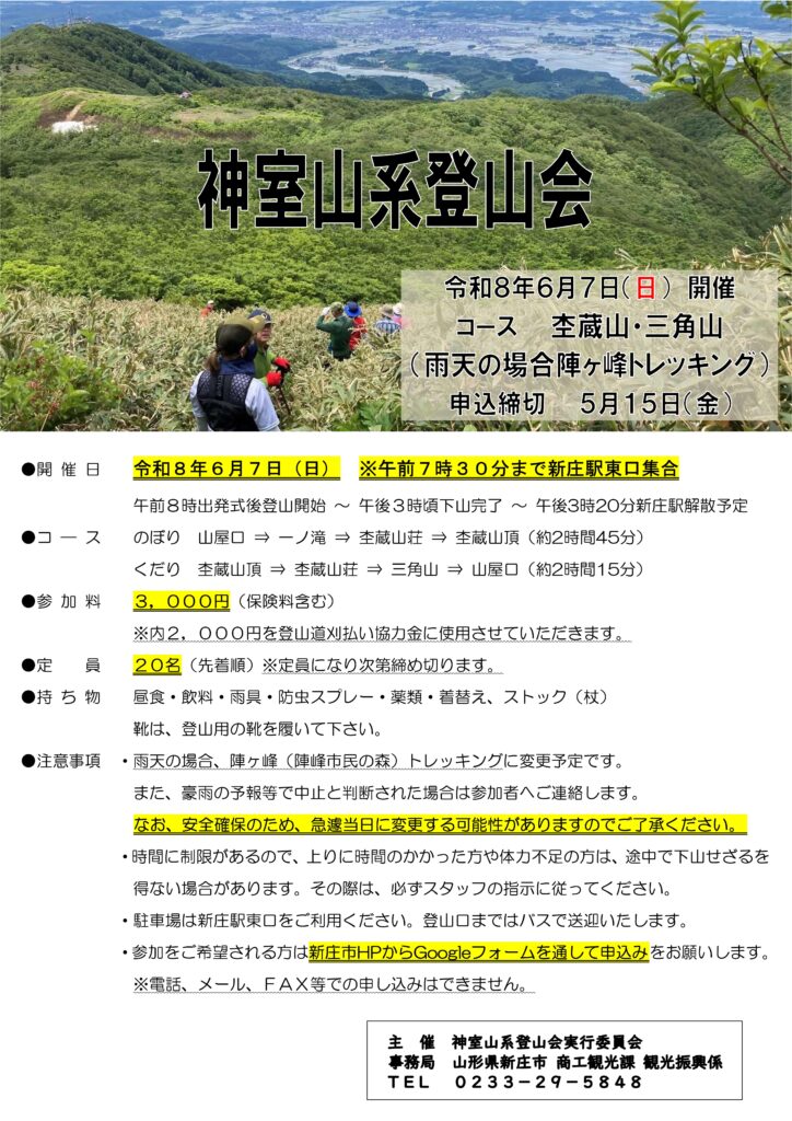 【問合せ】 神室山系登山会実行委員会事務局(新庄市商工観光課)TEL:0233-29-5848