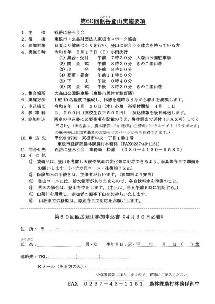 【申込み】 東根市経済部農林課農村林務係(FAX:0237-43-1151)